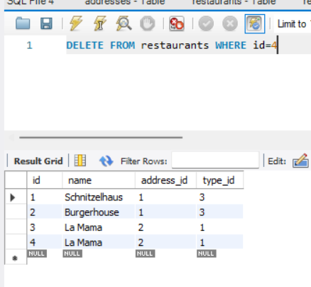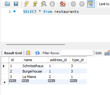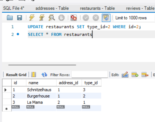 INSERT INTO restaurants (name, address_id, type_id) VALUES ('Schnitzelhaus', 1, 3)
