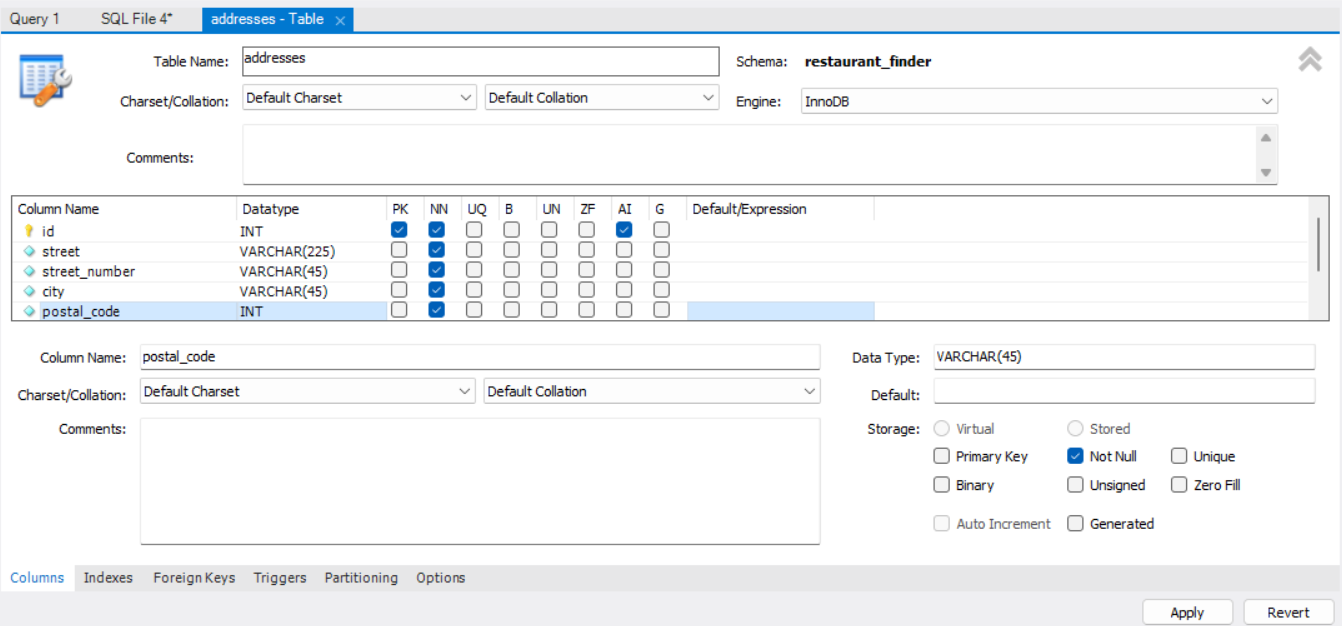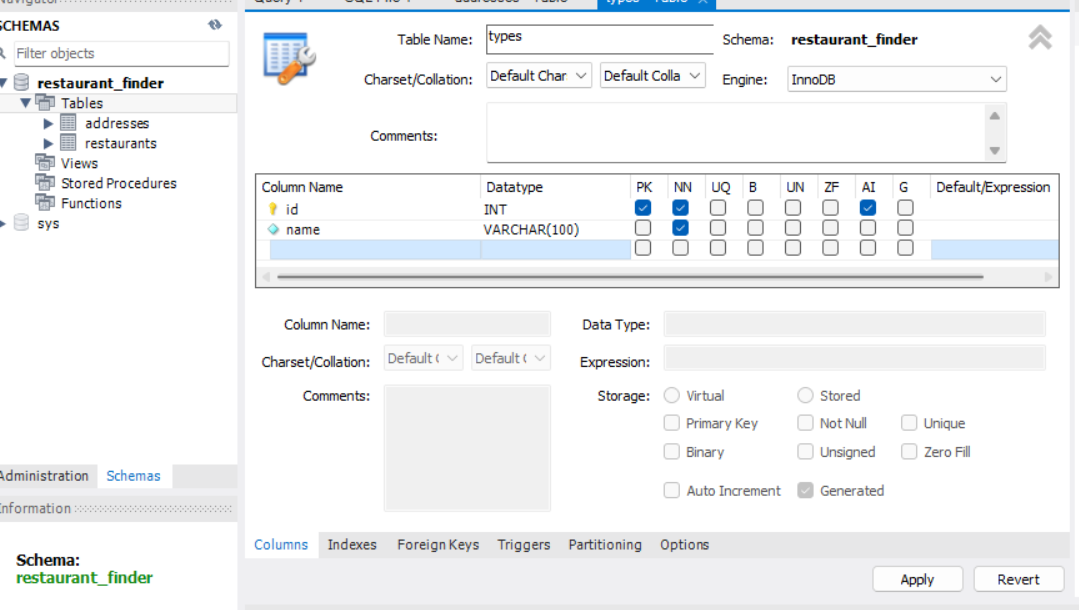 이후에 다른 테이블에서 addresses와 types와의 릴레이션을 생성하기 위한 초석을 깔아주도록 하자.