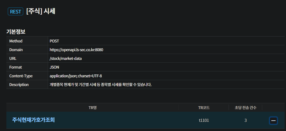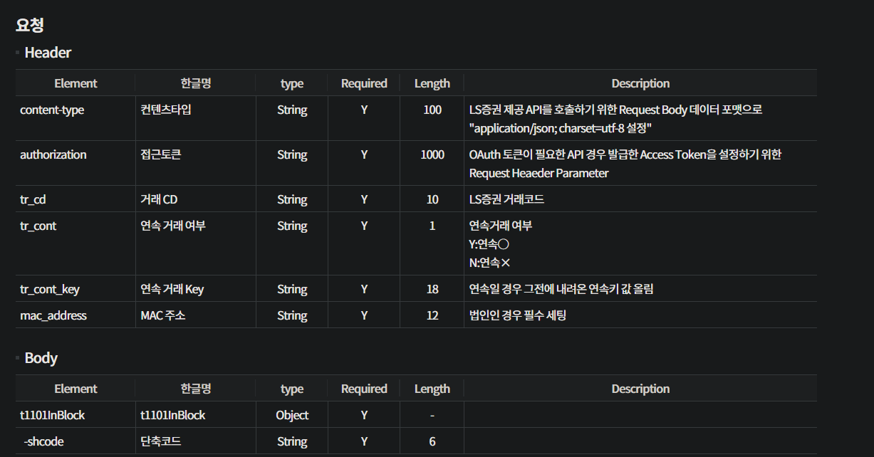 LS증권의 API 문서를 까보면